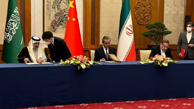 وأوضح البيان أنه جرت في الفترة من 6 - 10 مارس 2023م في بكين، مباحثات بين وفدي المملكة العربية السعودية والجمهورية الإسلامية الإيرانية برئاسة معالي الدكتور مساعد بن محمد العيبان وزير الدولة عضو مجلس الوزراء مستشار الأمن الوطني في المملكة العربية السعودية، ومعالي الأدميرال علي شمخاني أمين المجلس الأعلى للأمن القومي في الجمهورية الإسلامية الإيرانية.