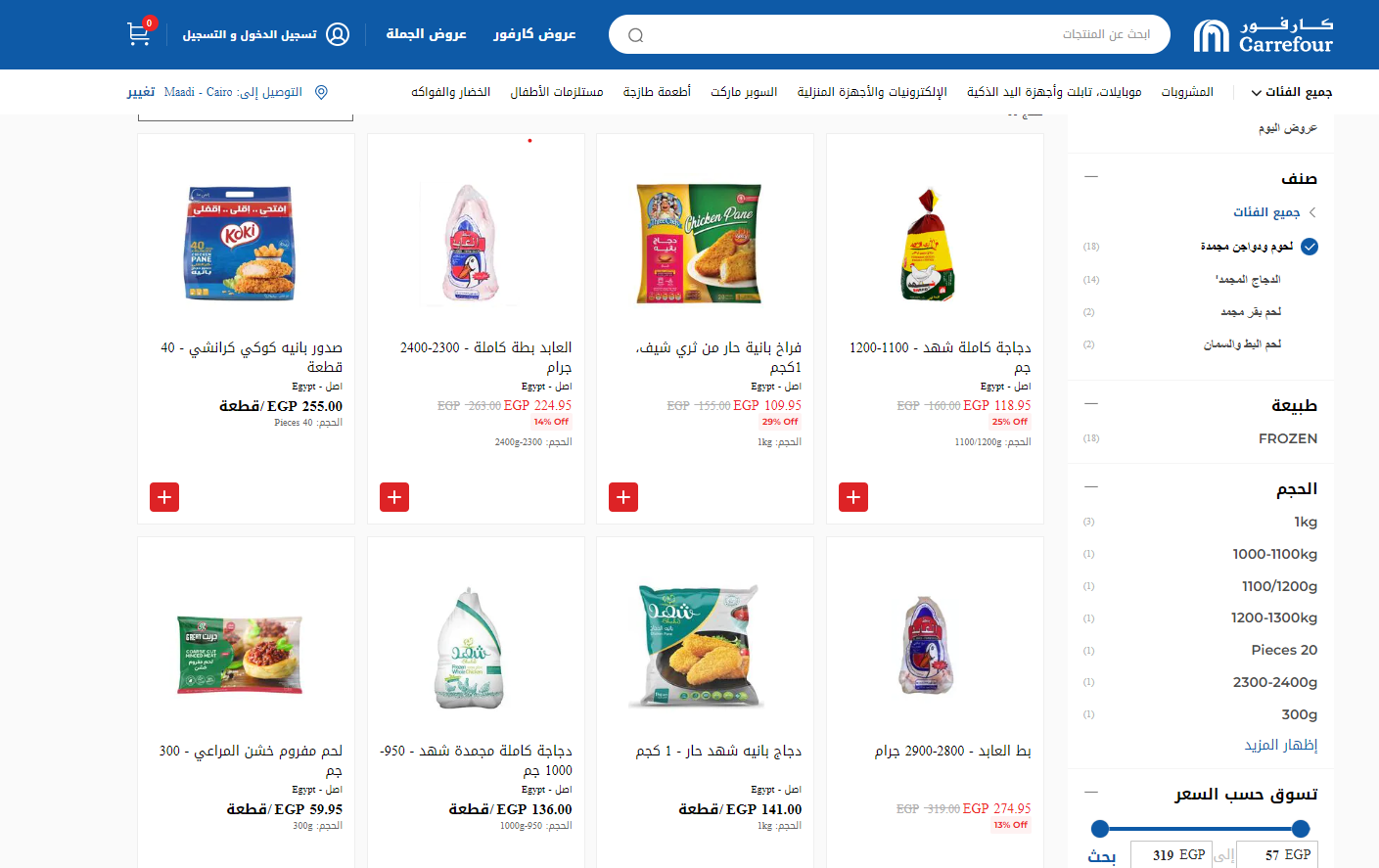 القاهرة 24 أجرى جولة بالأسواق لرصد أسعار الدواجن والبط في السلاسل التجارية، ووصل سعر البانية إلى 141 جنيها للكيلو بينما وصل سعر الدجاجة المجمدة في بعض العروض إلى 136 جنيها بدون أي تخفيض في سلاسل مثل كارفور.