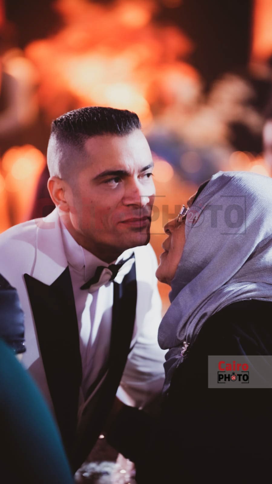 والتقط حسن شاكوش وعروسته صورًا مع والدته، التي بدت عليها ملامح الفرحة الشديدة.