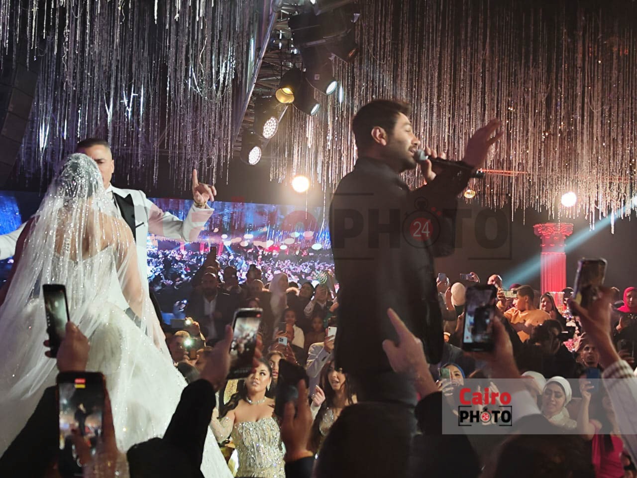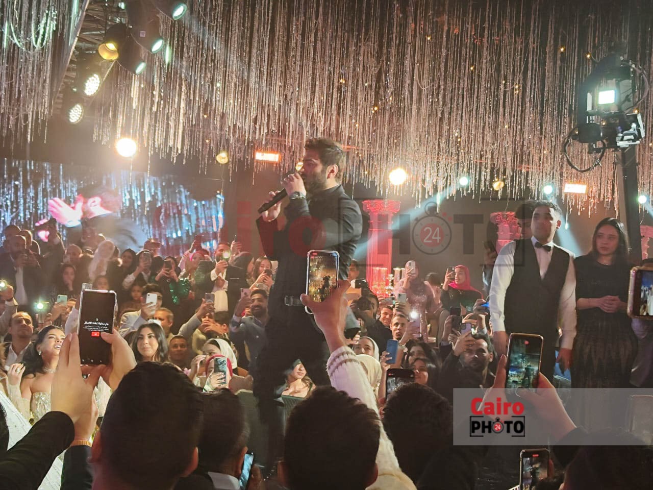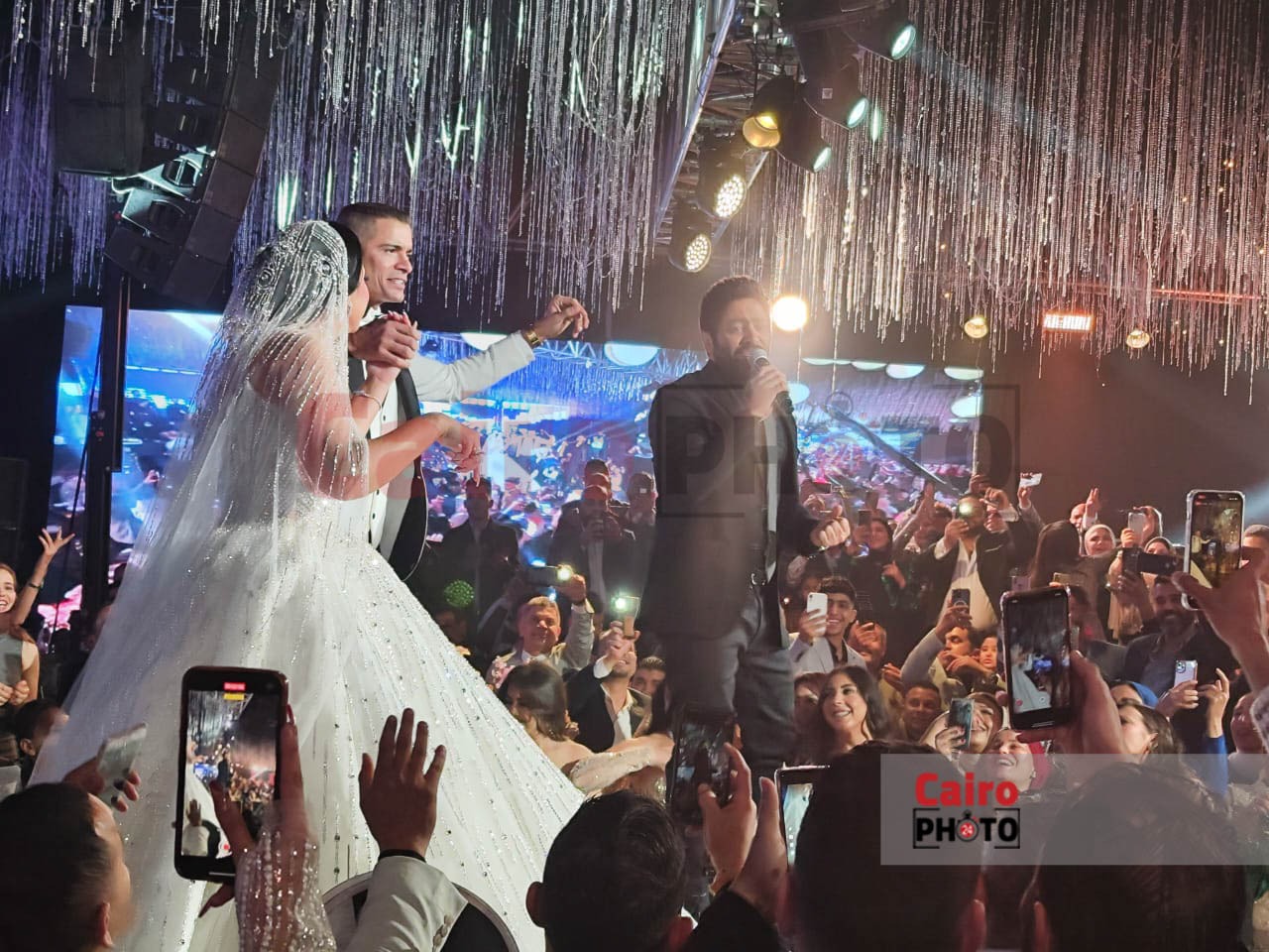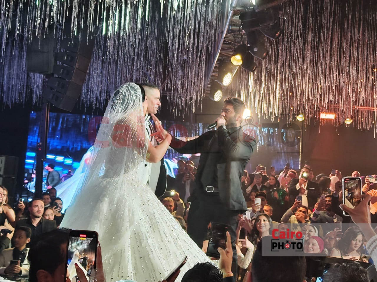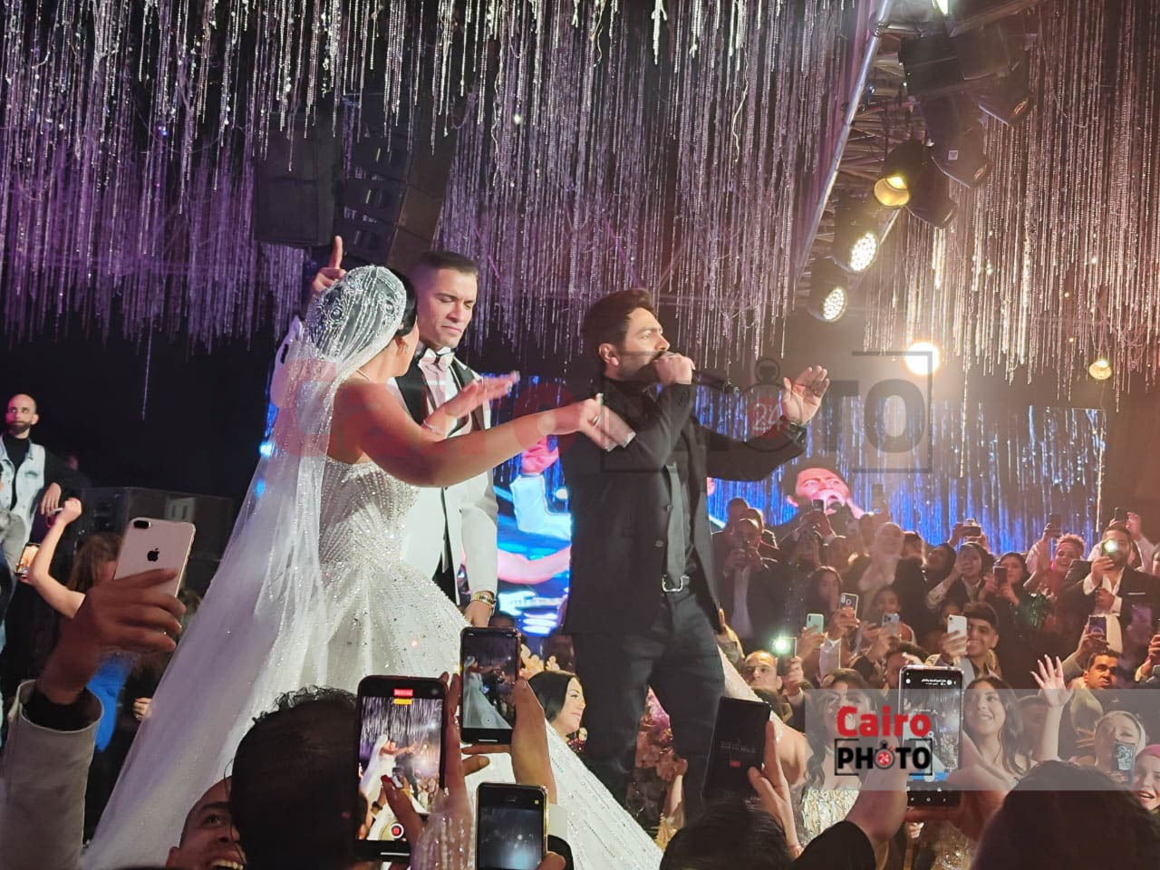 أحيا الفنان تامر حسني حفل زفاف مطرب المهرجانات حسن شاكوش المقام حاليًا في أحد فنادق القاهرة الكبرى.
