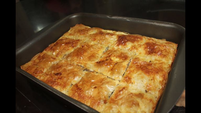 - تدهن صينية فرن بالزبدة ثم يؤخذ الرقاق ويتم وضعه في المرقة الساخنة مدة ثانية واحدة ثم توضع في الصينية.