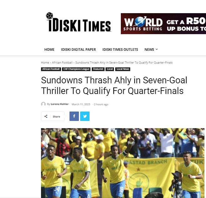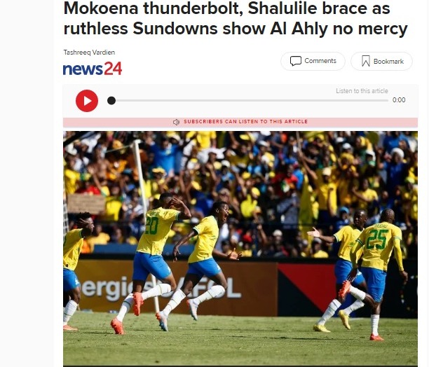 وتأتي ردود الصحف الجنوب إفريقية على النتيجة الكبيرة التي فاز بها فريق صن داونز على الأهلي كما يلي:-