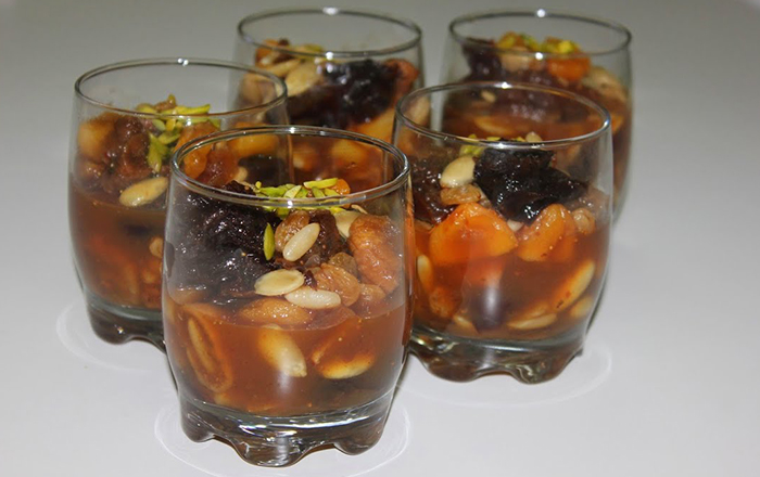 - يتم توزيع الخشاف في الأكواب مع تزينه بعين الجمل وبألف هنا وشفا.