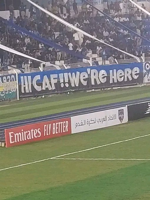 وعبر جمهور الهلال السوداني عن غضبه من قرار «كاف» بمنعهم من التواجد في مباريات الفريق بدوري أبطال إفريقيا، ووجه رسالة إلى الاتحاد الإفريقي برفع لافتة مكتوب عليها: كاف نحن هنا.