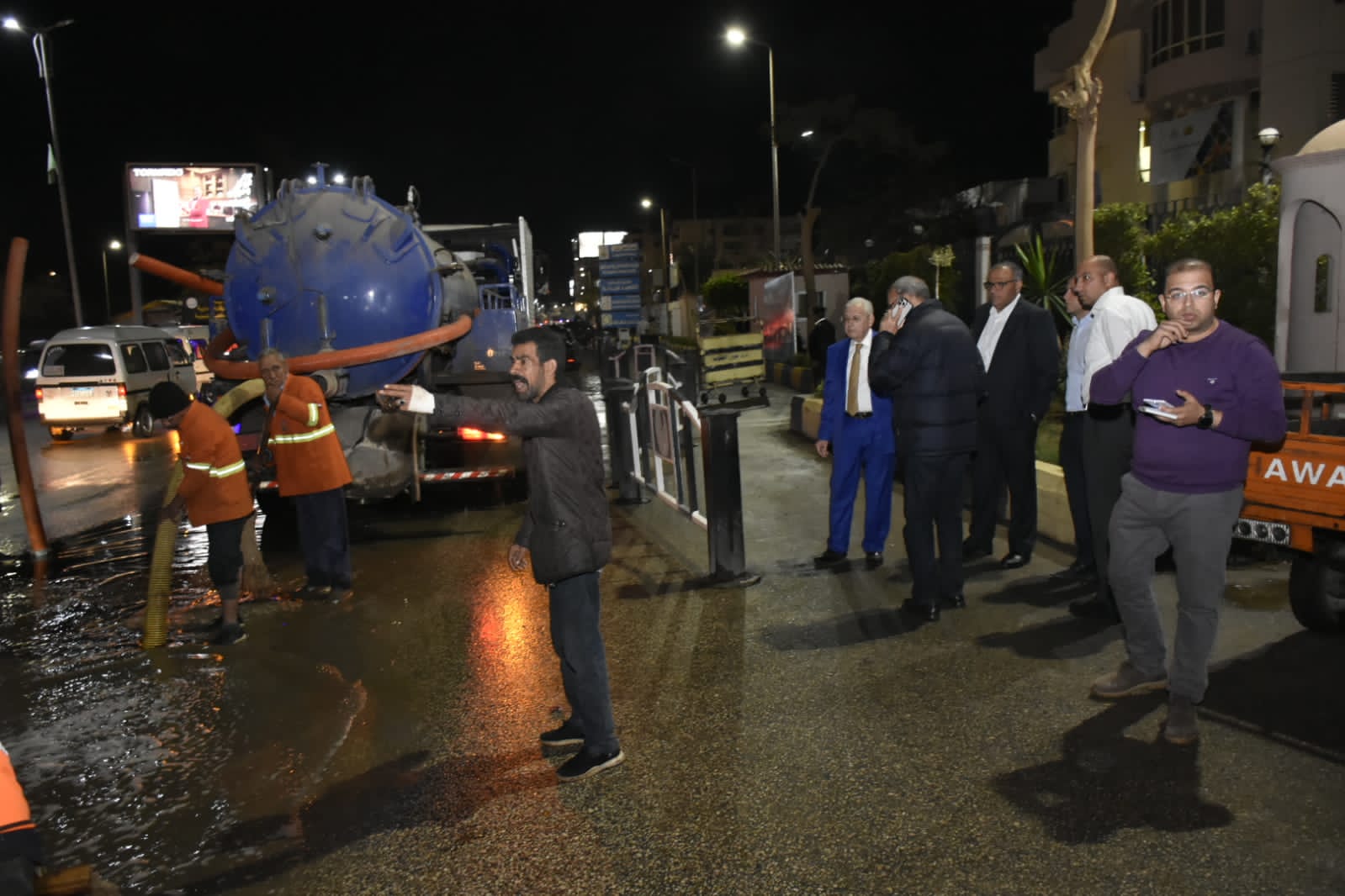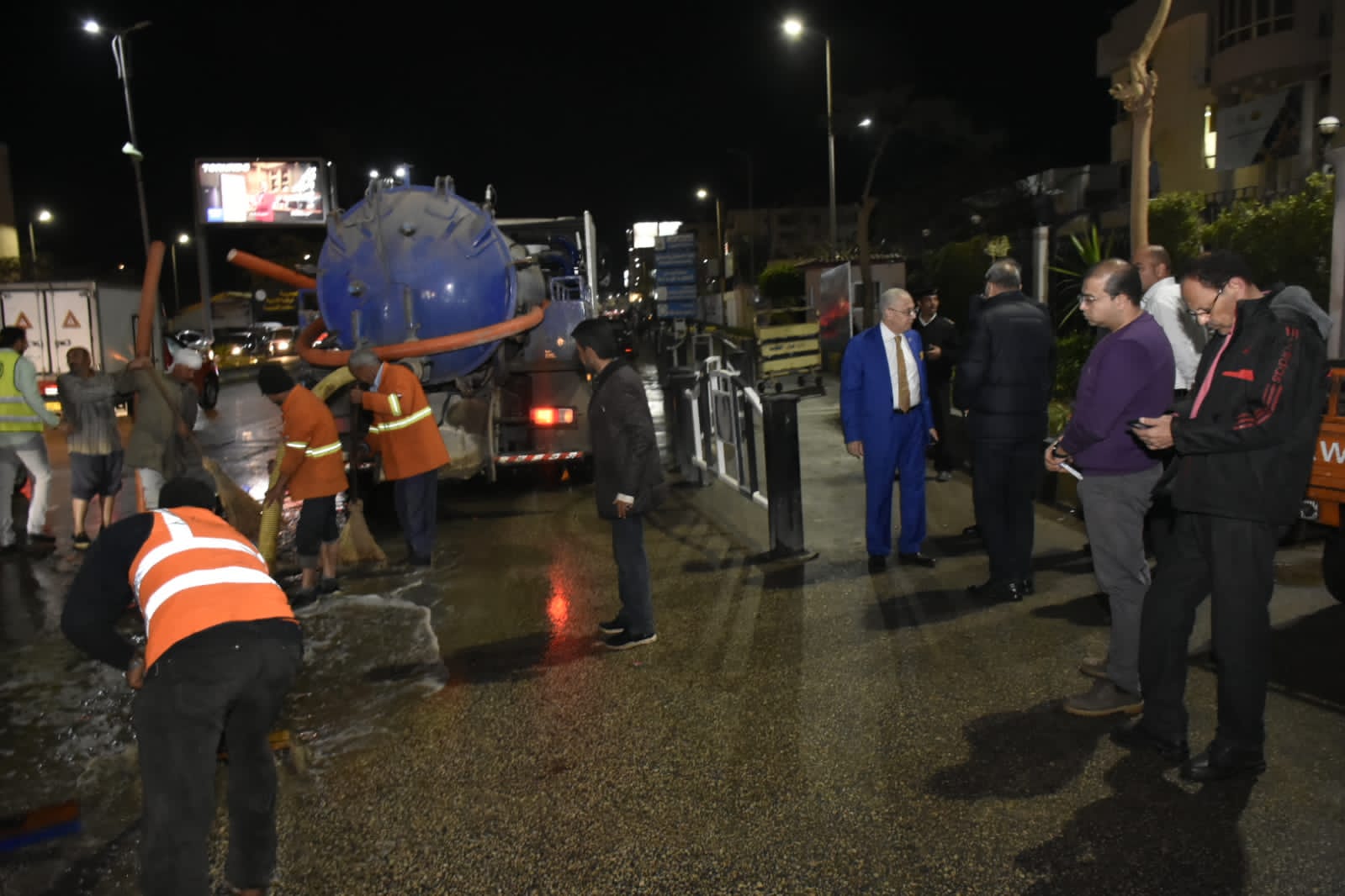 وشدد الهجان، على جميع الأجهزة التنفيذية المختصة بالتواجد الميداني على مدار اليوم في الشارع للتعامل الفوري مع أية حالة طارئة، وتكثيف أعمالها في الشوارع للتعامل مع موجة الطقس السيء، والتطهير المستمر لمطابق الصرف وبالوعات الأمطار ورفع أي أتربة أو مخلفات على جانبي الطرق من شأنها إعاقة حركة المرور أو التسبب في انسداد مطابق الصرف والبالوعات.