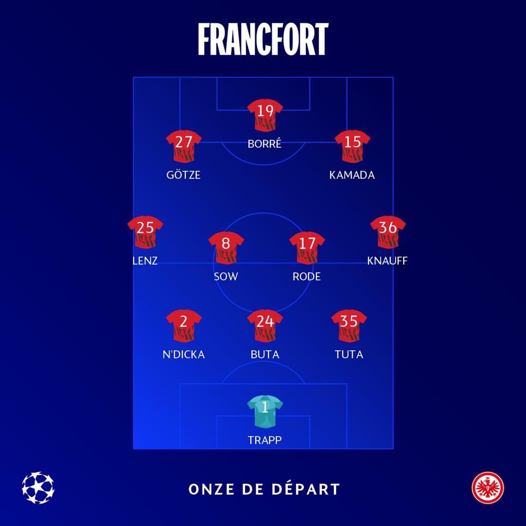 بينما جاء تشكيل فرانكفورت ضد نابولي كالآتي: