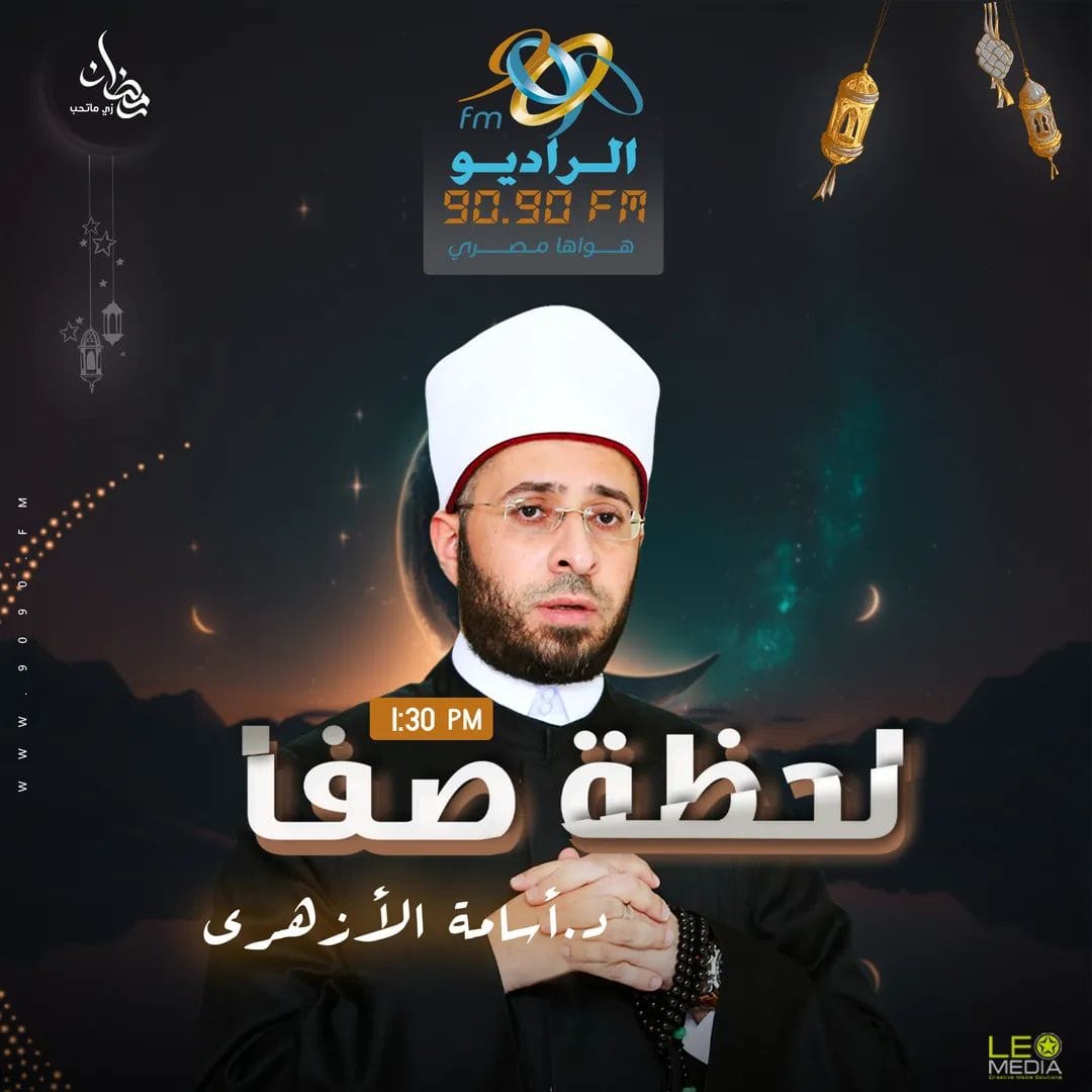 لحظة صفا يقدمه الدكتور أسامة الأزهري مستشار رئيس الجمهورية للشئون الدينية، في تمام الساعة 1:30 ظهرًا.