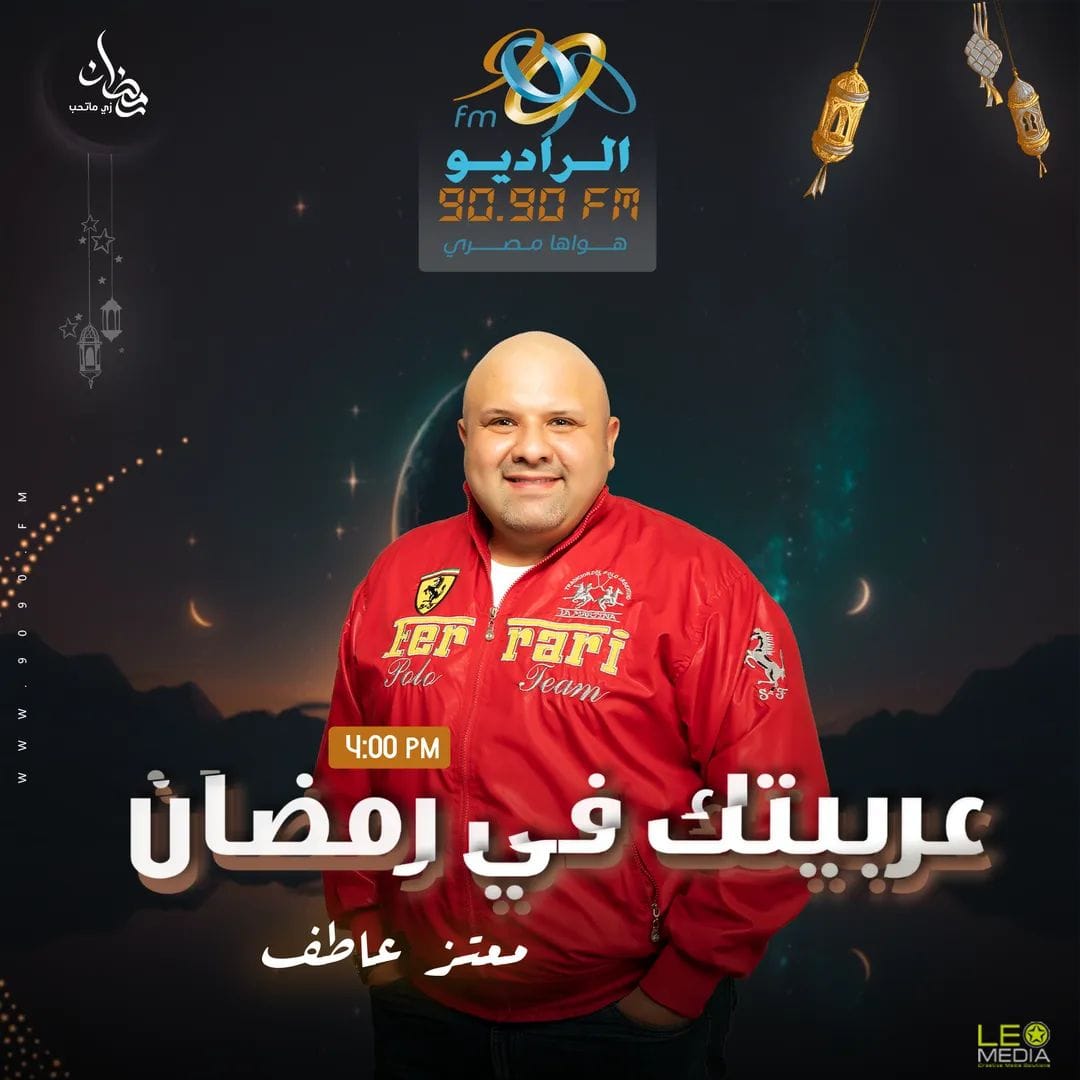 برنامج عربيتك في رمضان يقدمه الإعلامي معتز عاطف، في تمام الساعة 4 عصرًا.