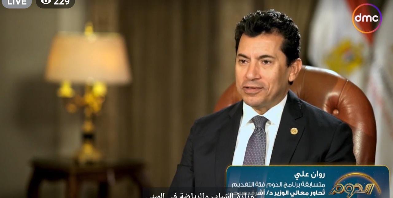 حاورت المتسابقة روان علي، المشاركة في فئة التقديم التلفزيوني خلال برنامج الدوم، الدكتور أشرف صبحي وزير الشباب والرياضة، في الحلقة النهائية من البرنامج.