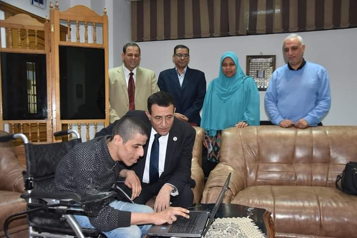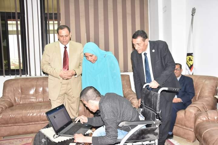 وشهد ناصف إجراء الاختبار الالكتروني الذي تم اليوم في مكتبه، بعد التأكد من أن الدارس يجيد القراءة وفهم المقروء والمسموع، والتحليل، والتركيب، وما يمتلكه من مهارات أخرى، لكنه لا يستطيع الكتابة بيده نظرا للإعاقة بل يجيدها على الحاسب الآلي.