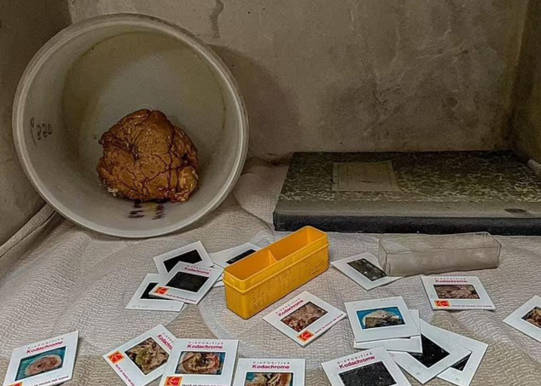وأظهرت واحدة من الصور القاتمة قلبًا بشريًّا تُرك حتى تعفن، وتم تخزينه بشكل غير صحيح وترك وراءه رائحة بشعة.
