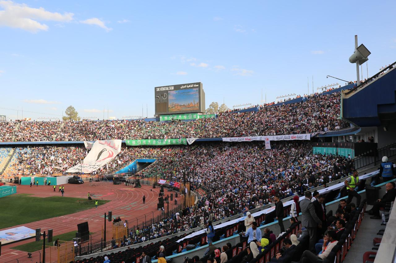 شهد الرئيس عبدالفتاح السيسي، رئيس الجمهورية، مساء اليوم الجمعة، إطلاق فعاليات مبادرة كتف في كتف في استاد القاهرة الدولي.
