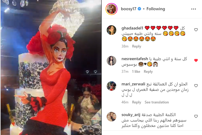 وحرصت فنانات مصر والوطن العربي على تهنئة الإعلامية بوسي شلبي بوصولها لسن الـ 59، إذ علقت الفنانة غادة عادل: كل سنة وانتي طيبة حبيبتي، بينما علقت الفنانة السورية نسرين طافش: كل سنة وانتي طيبة يا بوسبوس.