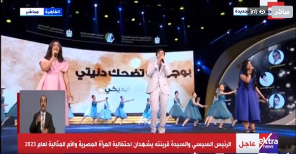 على جانب آخر، بدأت احتفالية المرأة المصرية والأم المثالية منذ قليل، بحضور رئيس الجمهورية، وقرينته انتصار السيسي، في مركز المنارة للمؤتمرات، وشارك في الحفل عدد من الفنانين، أبرزهم الفنان مدحت صالح، هنا إبراهيم يسري، هشام جمال، الذين قدموا باقة من الأغاني الخاصة بالأم، احتفالًا بـ عيدها.
