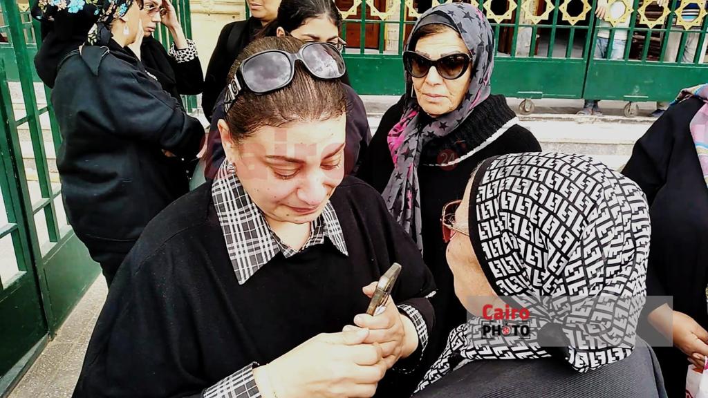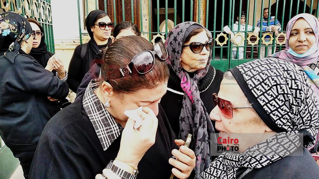 انهيار ابنة الفنانة لبنى محمود في جنازة والدتها بـ مسجد السيدة نفيسة