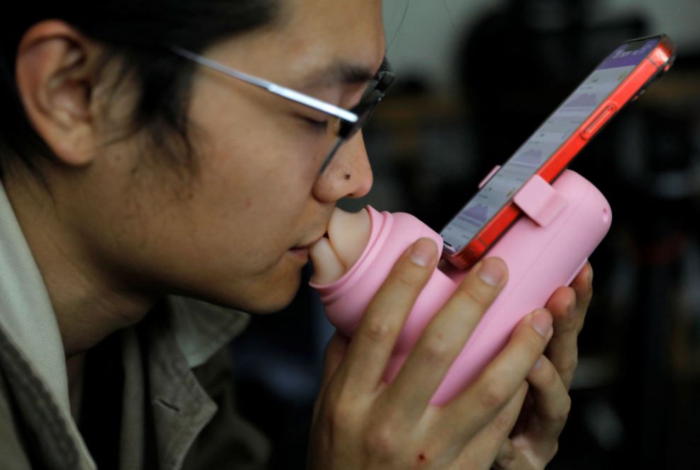 ابتكرت شركة صينية ناشئة، آلة تقبيل لمسافات طويلة تنقل بيانات التقبيل للمستخدمين التي تم جمعها من خلال مستشعرات الحركة المخبأة في شفاه من السيليكون، التي تتحرك في وقت واحد عند إعادة القبلات المتلقاة.