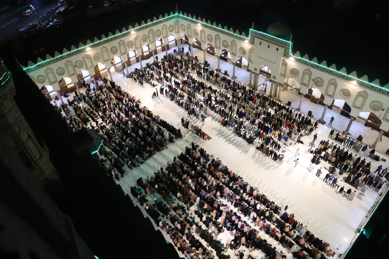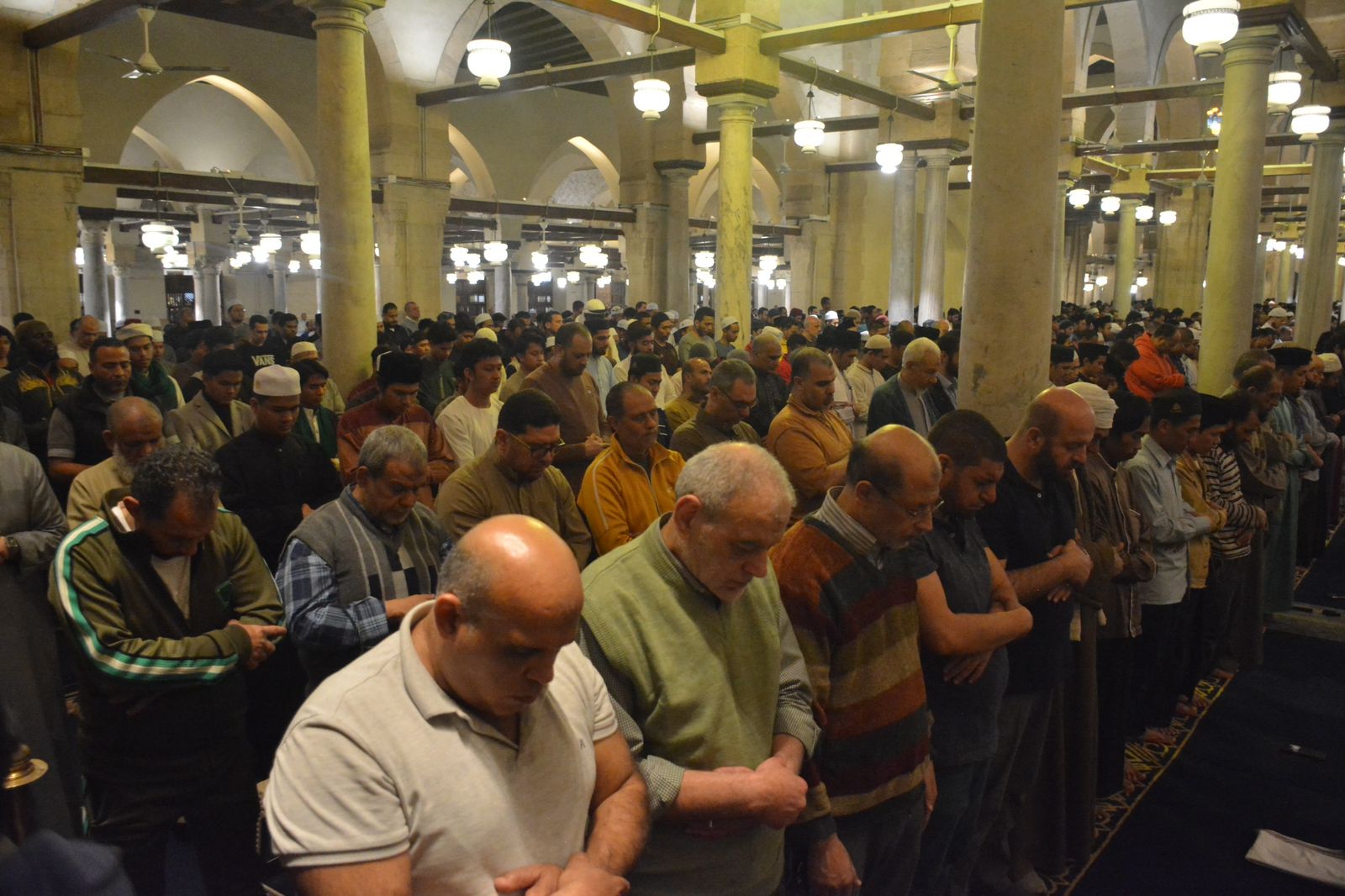 آلاف المصلين يؤدون صلاتي العشاء والتراويح في أجواء رمضانية بالجامع الأزهر