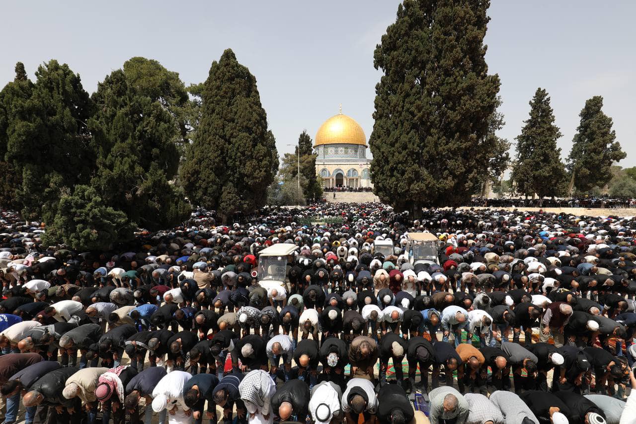 100 ألف مصل يؤدون أول صلاة جمعة من رمضان بالمسجد الأقصى المبارك | صور