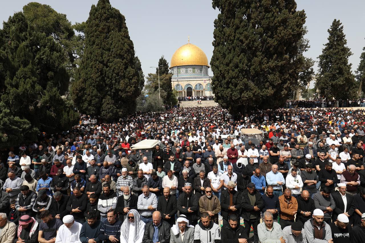أدى نحو 100 ألف شخص، صلاة الجمعة الأولى من شهر رمضان المبارك في المسجد الأقصى، اليوم، وفق ما ذكرته دائرة الأوقاف الإسلامية في القدس.