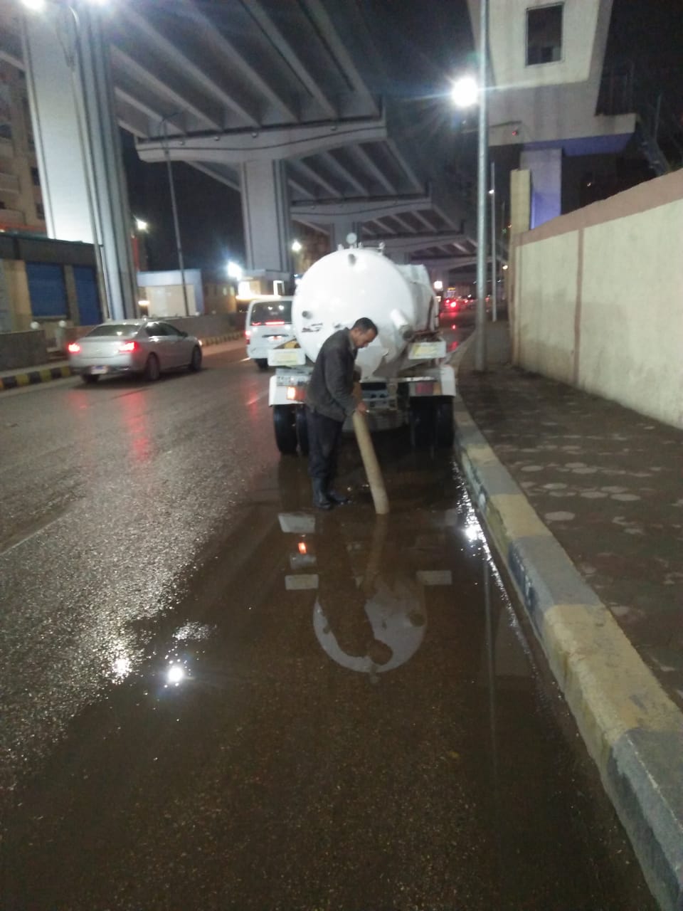 كما كلف المحافظ شركة مياه الشرب والصرف الصحي والهيئة العامة للنظافة بمواصلة نشر معدات وفرق الشفط بالتنسيق مع الأحياء والمراكز بالبؤر الساخنة ومطالع ومنازل الكباري والشوارع الرئيسية والحيوية والمحاور المرورية على مدار اليوم لمواجهة موجه التقلبات الجوية وهطول الأمطار.