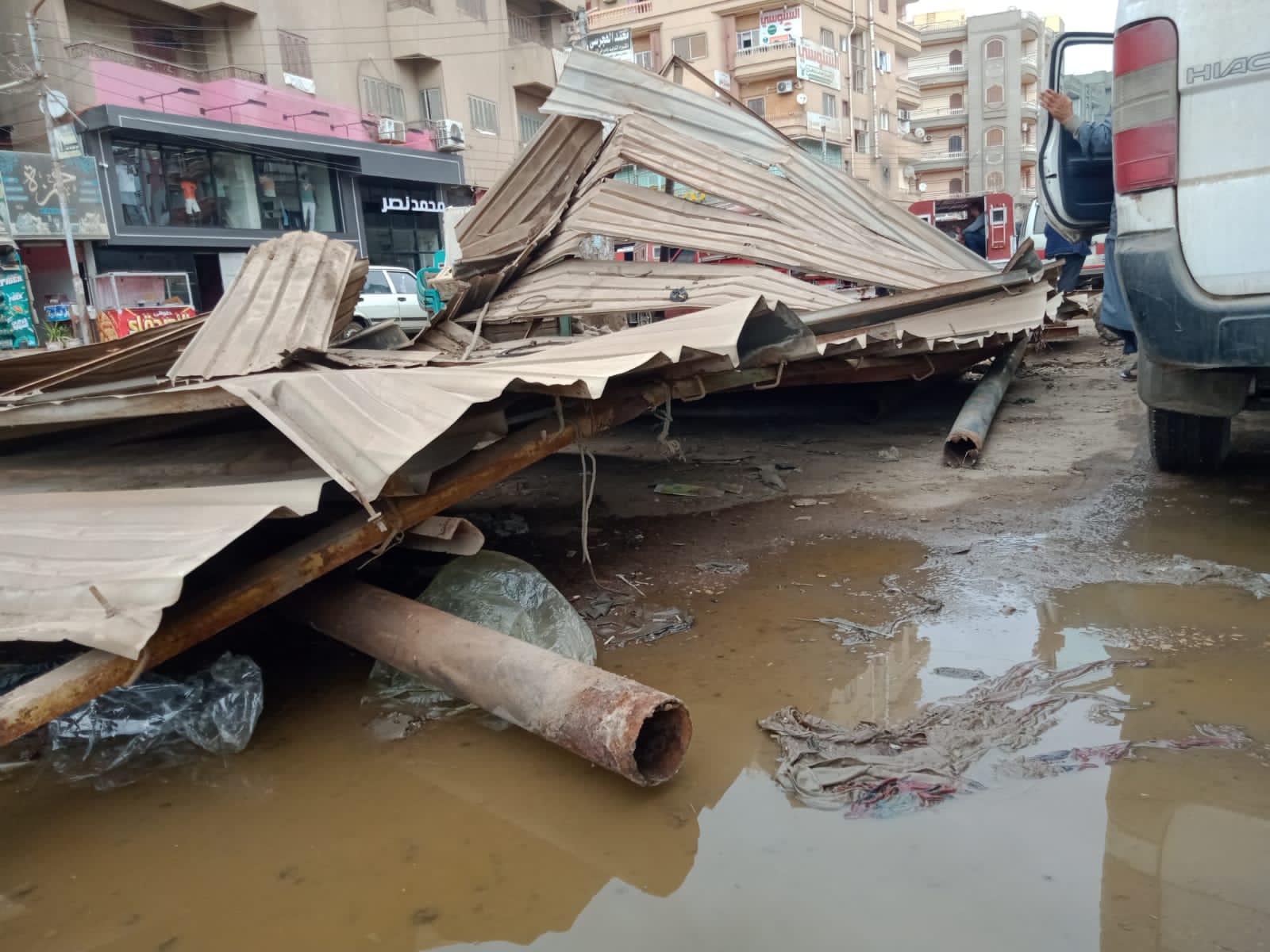 شهد مركز دكرنس في محافظة الدقهلية، انهيار تندة موقف على السيارات المتوقفة داخل الموقف، وذلك بسبب الرياح والطقس السيئ التي شهدتها المحافظة.