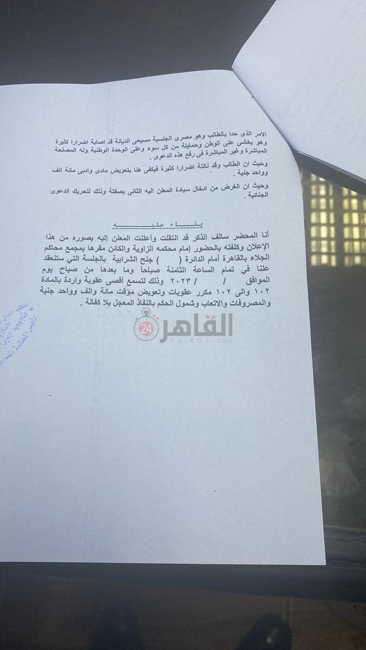 وأضاف محامي أسرة الطفل شنودة: وعدت النيابة العامة بالتحقيق في البلاغين، ثم توجهت بعد ذلك إلى محكمة جنح الشربية، بتقديم جنحة مباشرة ضد مريم يوسف باتهامات معينة وازدراء الأديان وإفشاء أخبار كاذبة وإثارة الفتنة الطائفية، وتحدد جلسة مباشرة يوم 6 مايو القادم وهي أولى جلسات محاكمة مريم يوسف عدلي، ونحن سوف نلاحق هذه السيدة التي كادت أن تفتك بالمجتمع وإحداث فتنة طائفية بين المسلمين والمسيحين.