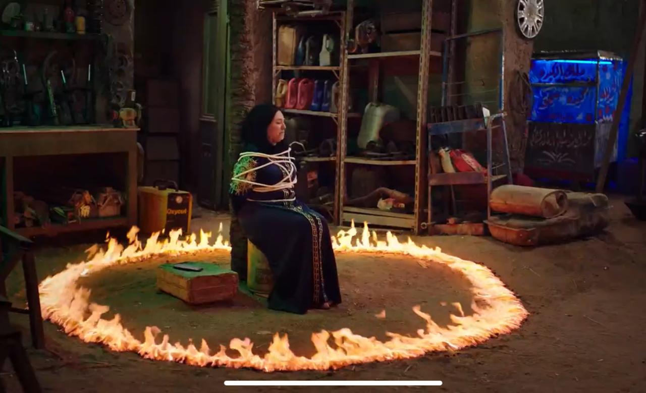 وتشتعل النيران في مربوحة أثناء تسجيل الفيلم، ويشتعل الحريق داخل الورشة وينتبه الكبير بعد حديثه مع نفادي أن مربوحة ولعت داخل الورشة.
