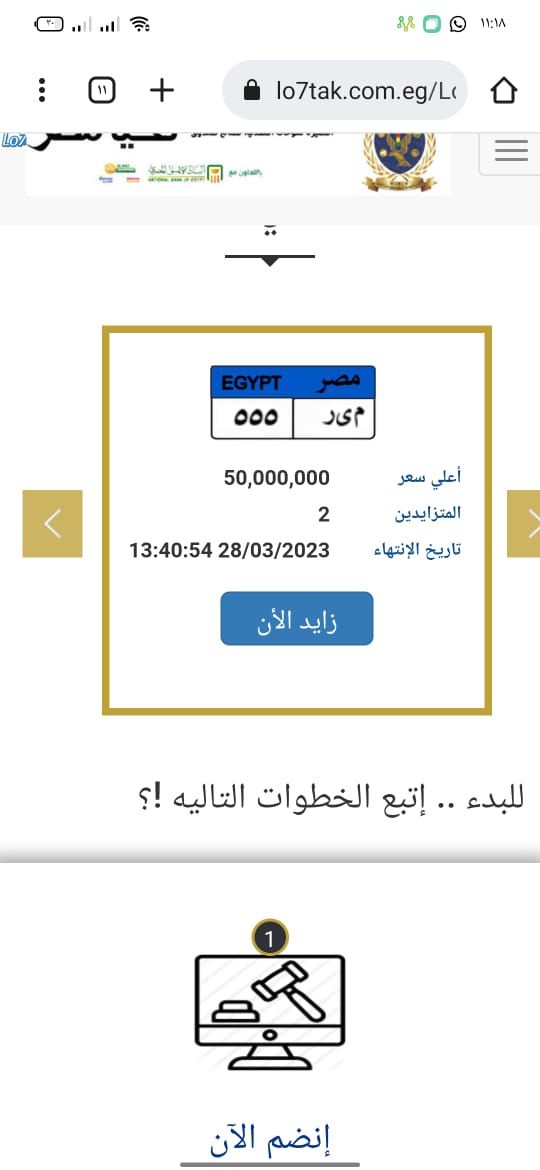 طرحت وزارة الداخلية، من خلال موقع لوحتك، التابع للإدارة العامة للمرور لوحة سيارة مميزة تحمل رقم "م ى ر 555" للتزايد ووصل سعرها إلى 50 مليون جنيه بعد مزايدة شخصين عليها.