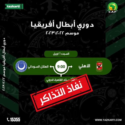 وأكدت الشركة نفاد تذاكر مباراة الأهلي والهلال السوداني، مطالبة الجماهير بالمسارعة لطباعة التذاكرة واستلامها بعد الدفع.