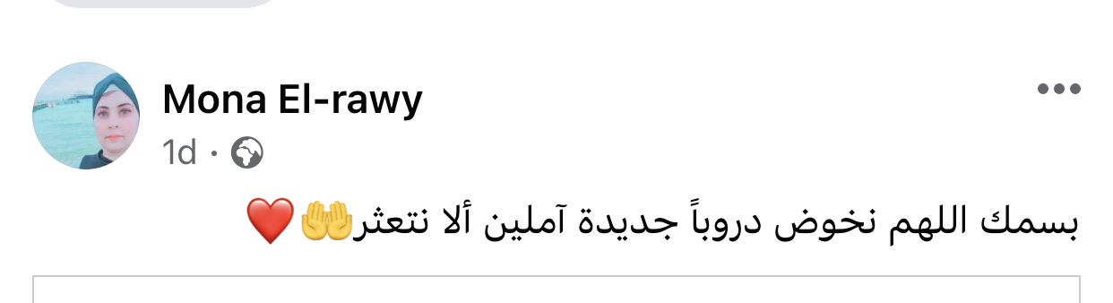 وكان آخر ما كتبته على صفحتها على فيس بوك: بسمك اللهم نخوض دروبا جديدة آملين ألا نتعثر.