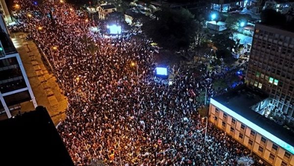 وتزامنت الكلمة مع دعوة بن غفير وسموترتش أنصار اليمين إلى التظاهر، وبدأ فعلا نشطاء يمين بالدعوة إلى حرب أهلية، وخرجت مظاهرات كبيرة مناهضة لنتنياهو في تل أبيب ومظاهرة ثانية مؤيد له في القدس.