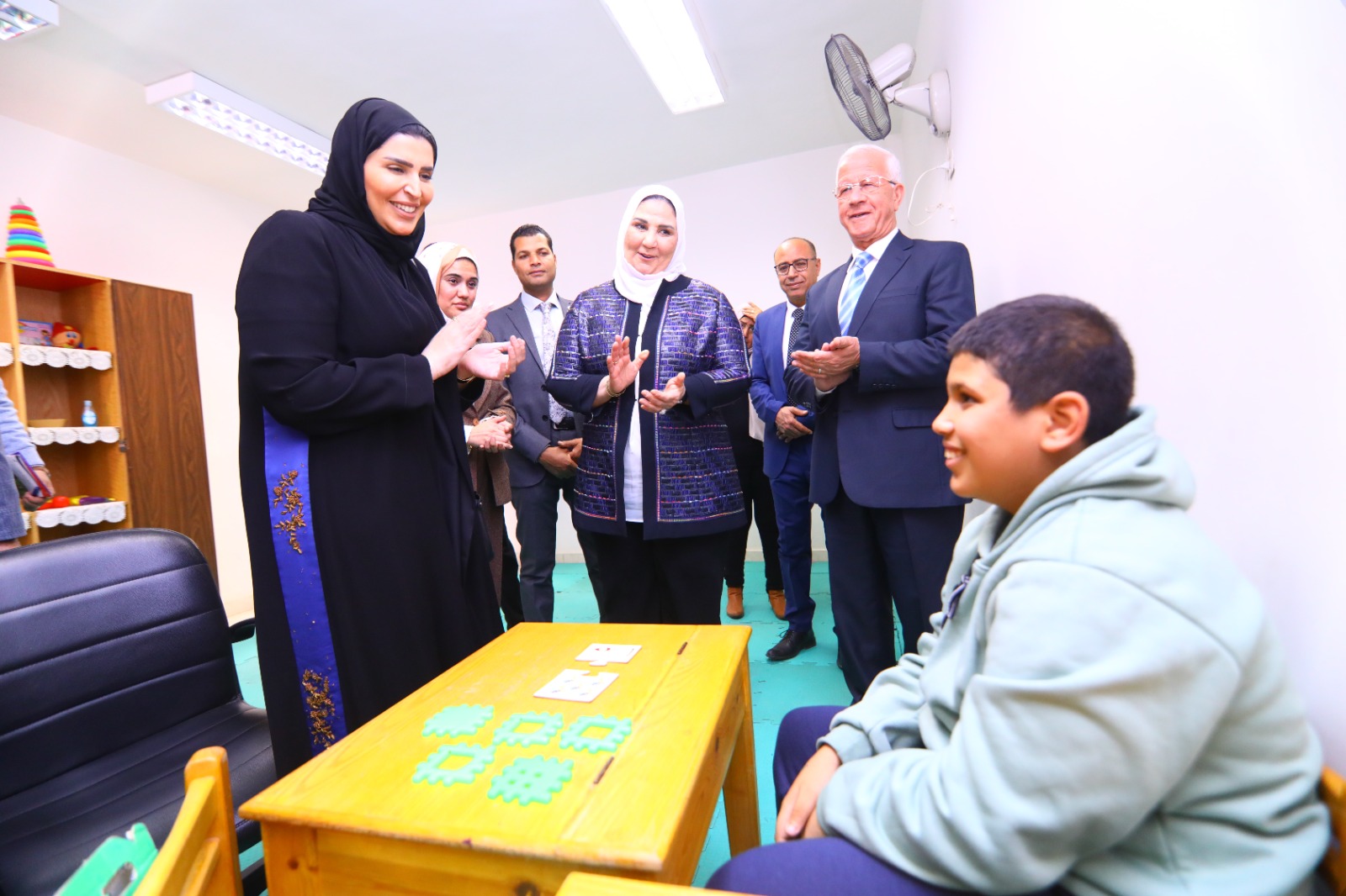 وأجرت الوزيرتان زيارة لمجمع خدمات ذوي الإعاقة الشامل بعين شمس، وكان في استقبالهما اللواء عبد الحكيم حمودة المدير التنفيذي للمؤسسة القومية لتنمية الأسرة والمجتمع، حيث قدم شرحًا لما يتضمنه المجمع من مؤسسة التثقيف الفكري ومركز رعاية وتأهيل أصحاب طيف التوحد، وحالات الشلل الدماغي، بالإضافة إلى الحضانة الدامجة، ومركز العلاج الطبيعي، ومركز القياس السمعي والبصري والذهني.