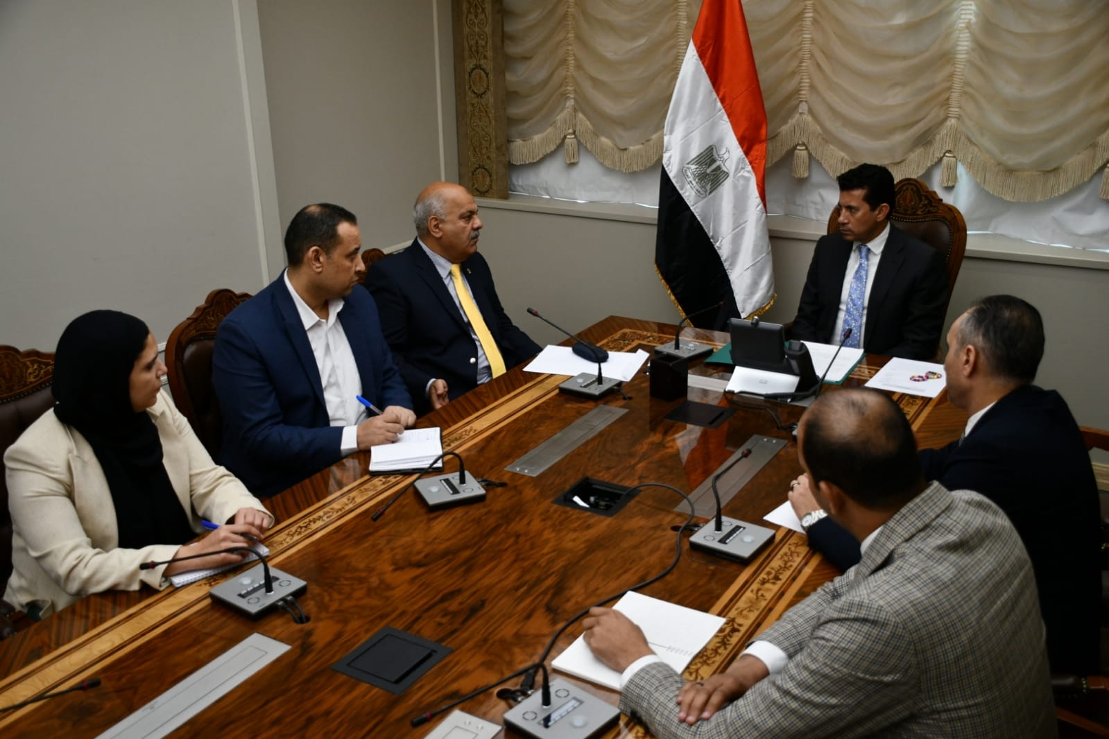 وبحث وزير الشباب والرياضة استعدادات استضافة البطولة والأماكن المقترحة لاستقبال اللاعبين المشاركين، والإجراءات الوقائية التي سيتم اتخاذها للحفاظ على سلامة المشاركين.