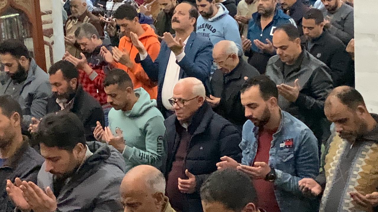 محافظ بورسعيد يؤدي صلاة التراويح وسط المُصلين ويغادر في سيارة ملاكي