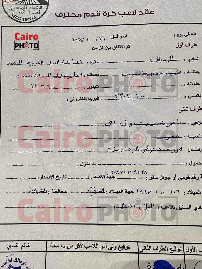 ينشر القاهرة 24، تفاصيل عقد ناصر منسي مهاجم الفريق الأول لكرة القدم بنادي الزمالك، الذي تم التعاقد معه خلال فترة الانتقالات الشتوية الماضية، قادما من صفوف فريق البنك الأهلي.