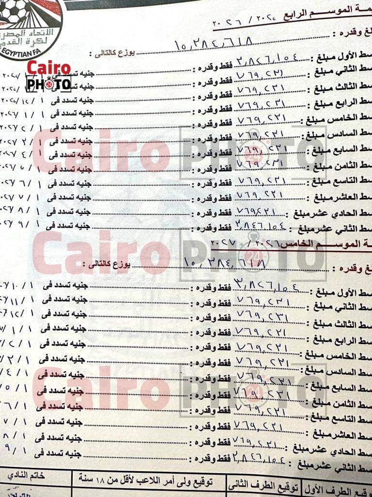 وفي الموسم الرابع من عقد اللاعب يحصل على مبلغ 15 مليون و882 ألف جنيه ويحصل في القسط الأول على مبلغ 3 ملايين و826 ألف جنيه والقسط الثاني مبلغ 765 ألف جنيه وباقي الأقساط على باقي الشهور المتبقية من الموسم.