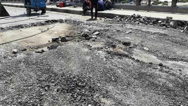 بعد غلق الطريق.. بدء أعمال إصلاح هبوط كوبري بنها
