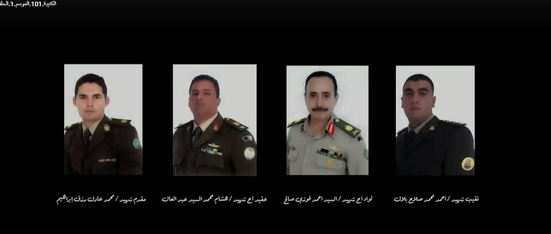 وعرضت الحلقة صور الضباط شهداء التفجير الإرهابي، وضمت  الصور لـ النقيب شهيد أحمد محمد صلاح بلال، واللواء شهيد السيد أحمد فوزي صالح، والعقيد أ.ح هشام محمد السيد عبد العال، والمقدم شهيد محمد عادل رزق إبراهيم.