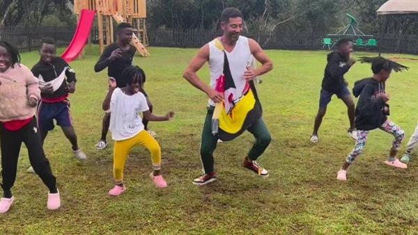 عمرو سعد في وصلة رقص مع الأطفال بكواليس مسلسل الأجهر بـ مدن إفريقية