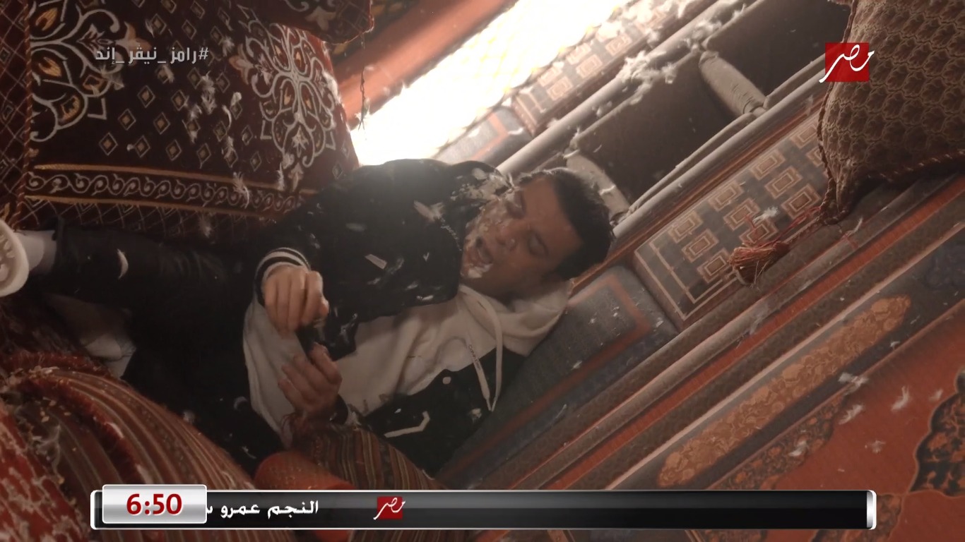 كما ظهر الفنان محمد رمضان في حالة رعب بسبب مقلب “الغسالة” كما هاجمه ثور خلال جلوسه في أحد المطاعم، وتوعد رامز جلال في بداية الحلقة بأنه سيقضي على أسطورة نمبر وان.
