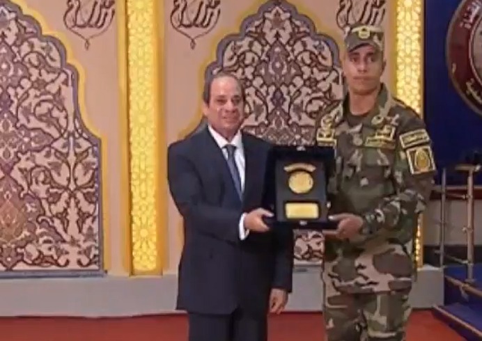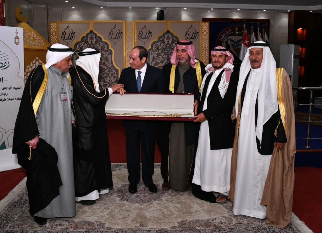 وتضمنت الاحتفالية تكريم عدد من مجندي ومقاتلي قوات شرق القناة لمكافحة الإرهاب ومقاتلي الجيشين الثاني والثالث الميدانيين، فضلا عن تقديم مجموعة من شيوخ قبائل سيناء هدية تذكارية للرئيس عبد الفتاح السيسي.