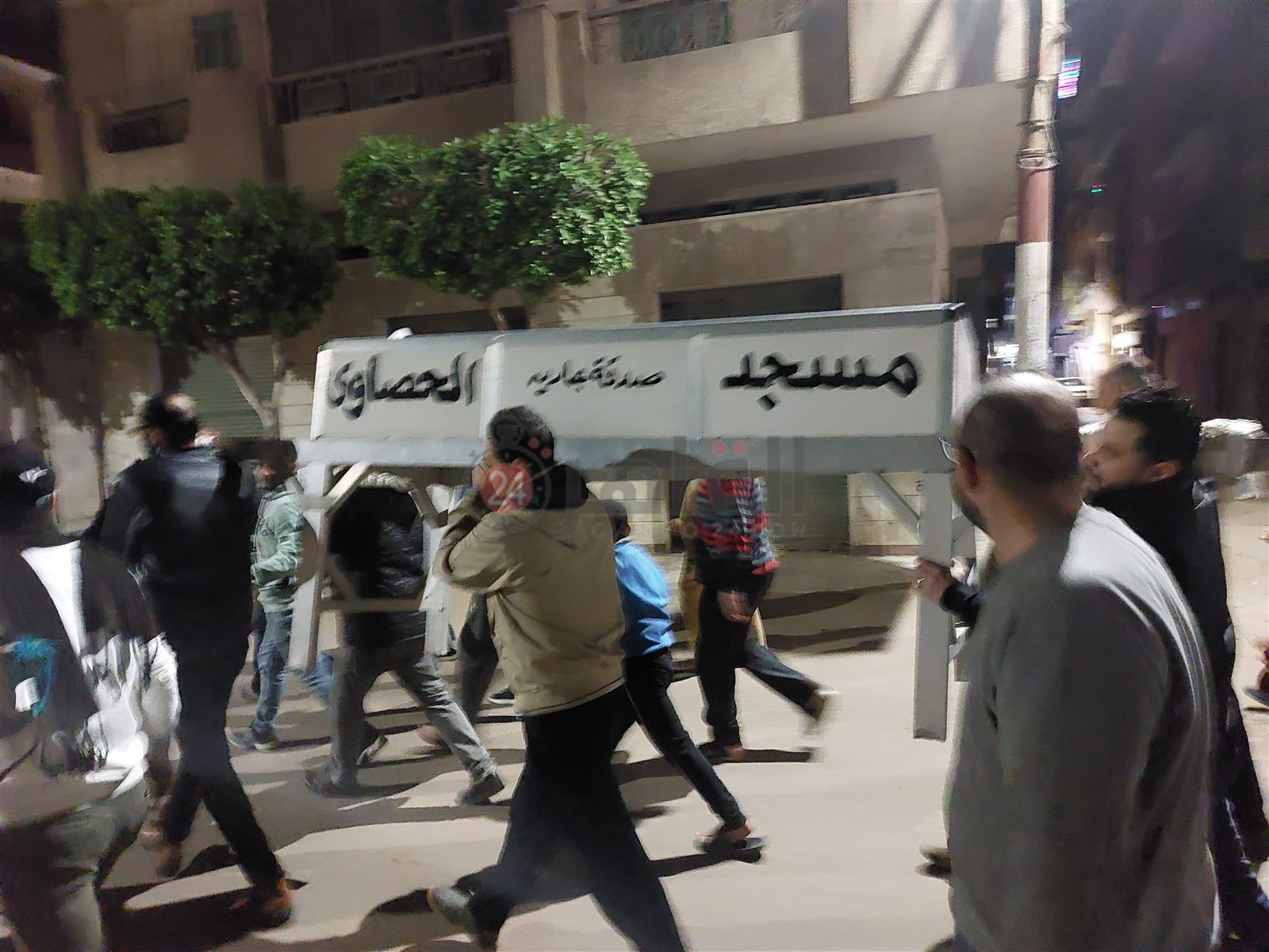 وأشرف مسئولو دار المصطفى للرعاية بمدينة كفر الزيات، على نقل الجثمان إلى مسجد الحصاوي بمدينة كفر الزيات وأداء صلاة الجنازة عليه بالمسجد، حيث لا يوجد له أي عائل أو قريب نظرا لوفاة زوجته منذ سنوات عديدة وتم دفنه بمقابر الصدقة بمدينة كفر الزيات.
