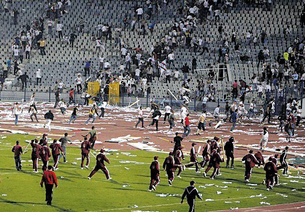 وأحرز الزمالك هدفا ثالثا، إلا أن الحكم يلغيه لينزل الجمهور بعدها إلى أرض الملعب خاصة وأن المباراة كانت قد قاربت على الانتهاء وكان الزمالك يحتاج لإحراز أهداف من أجل التأهل ويتوقف اللعب تماما، ويخرج عدد من لاعبي الأفريقي التونسي خارج الملعب إلى غرف الملابس ويحاول حسام حسن ولاعبي الزمالك إنقاذ لاعبي الأفريقي التونسي من الجماهير التي نزلت الى أرض الملعب خوفا من وجود إصابات أو وفيات بين اللاعبين في ظل حالة الهرج والمرج التي سادت المباراة.