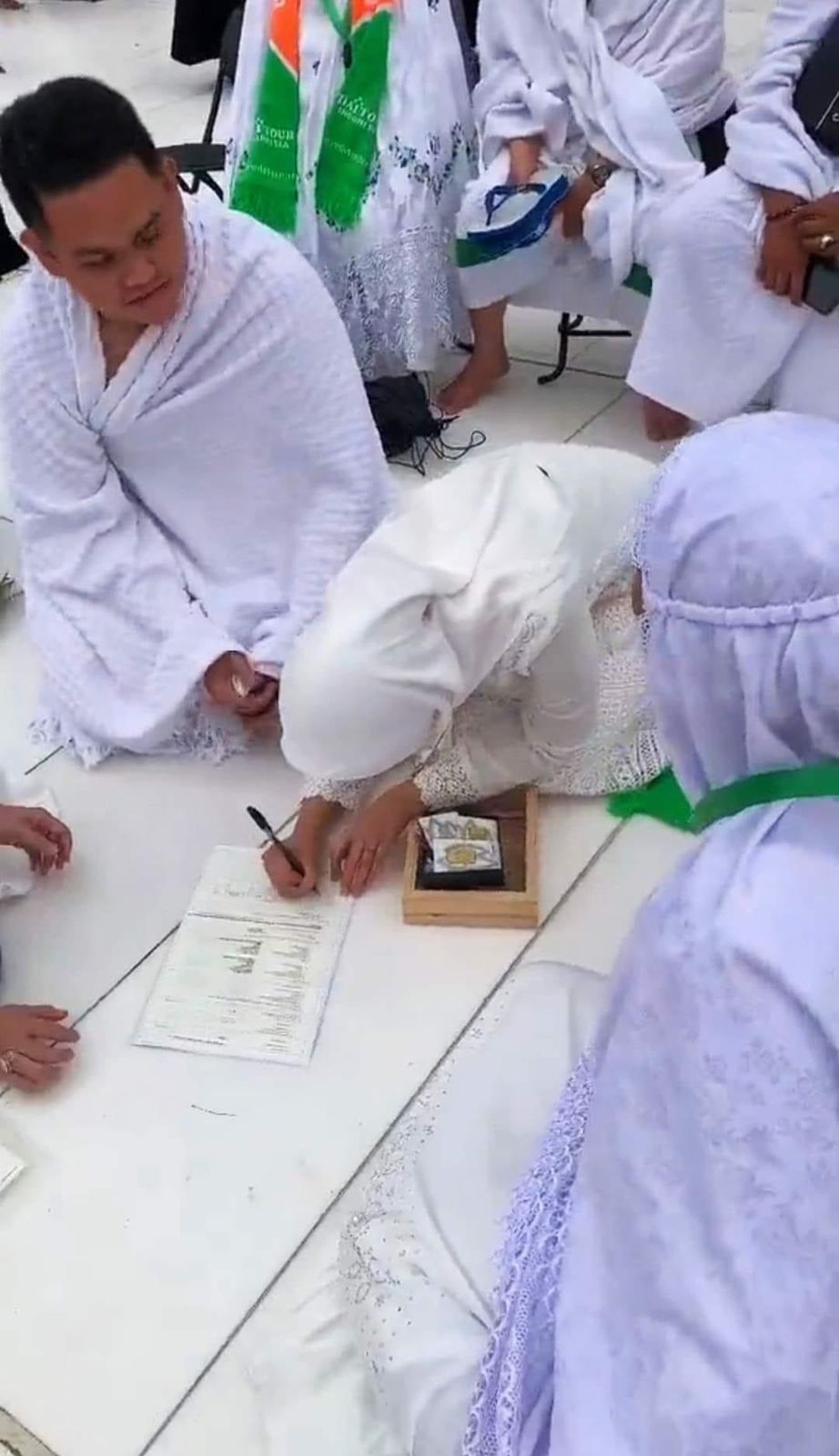 ووفقًا للمصادر المحلية، فإن الفيديو يسجل لحظة عقد قران الشاب على فتاة من إندونيسيا، ويرتدي كلا من العروسين والزي الأبيض، ويجلسان على الأرض بالقرب من الكعبة المكرمة.