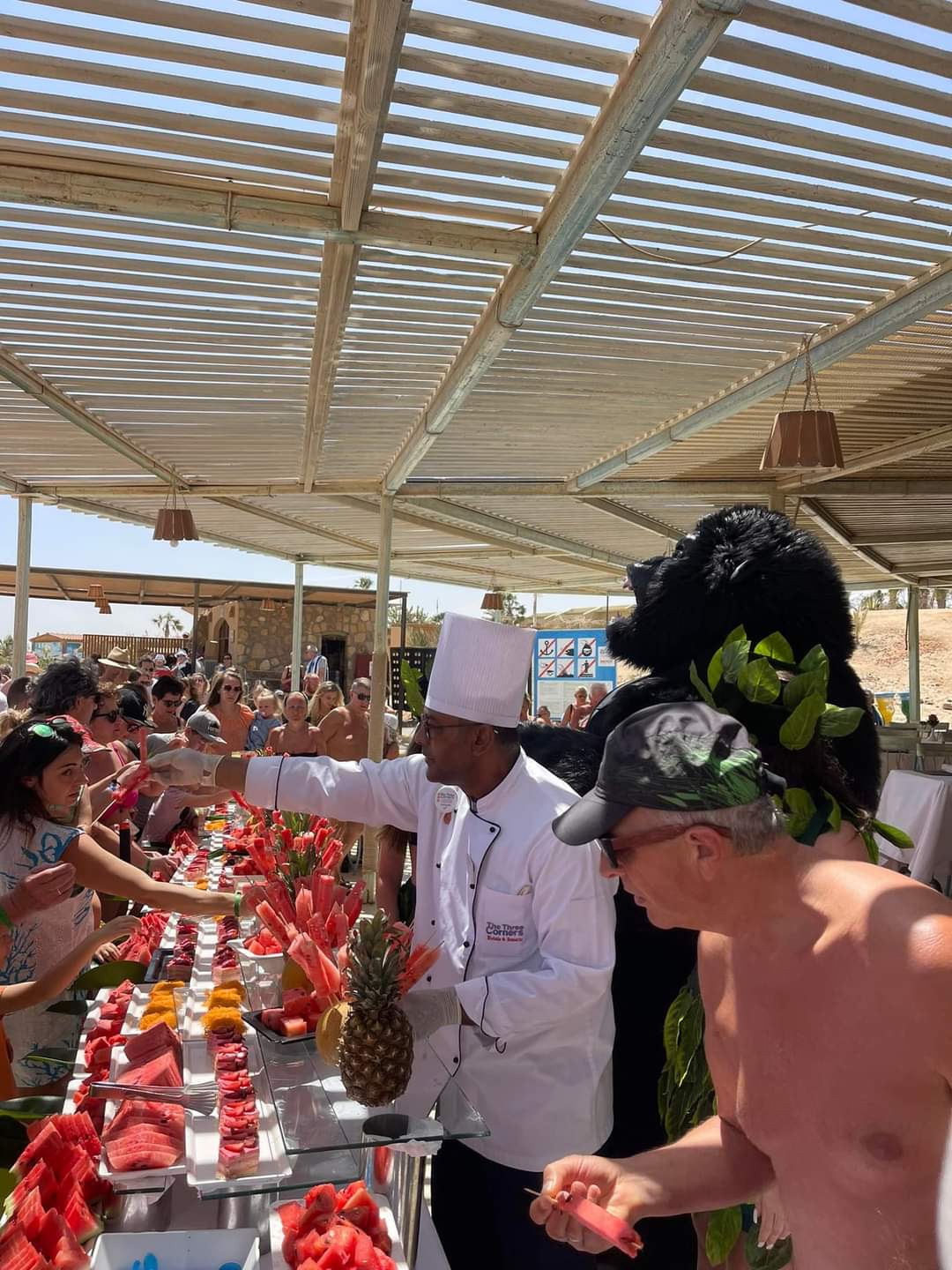 نظمت عدد من القرى والمنتجعات السياحية بمرسى علم جنوب البحر الأحمر، اليوم الأربعاء، مهرجان البطيخ على الشواطئ المفتوحة بمشاركة السائحين الأجانب من مختلف الجنسيات الأجنبية.