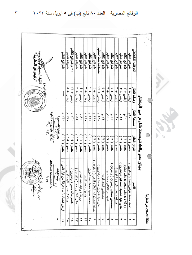 وقال القرار الصادر: تنزع ملكية الأراضي والعقارات اللازمة الصادر بشأنها قرار رئيس مجلس الوزراء رقم 3027 لسنة 2021 ورقم 1004 لسنة 2022 وحدودها وأسماء ملاكهـا الظاهرين بالمذكرة الإيضاحية والموضح بياناتها بالكشوف.