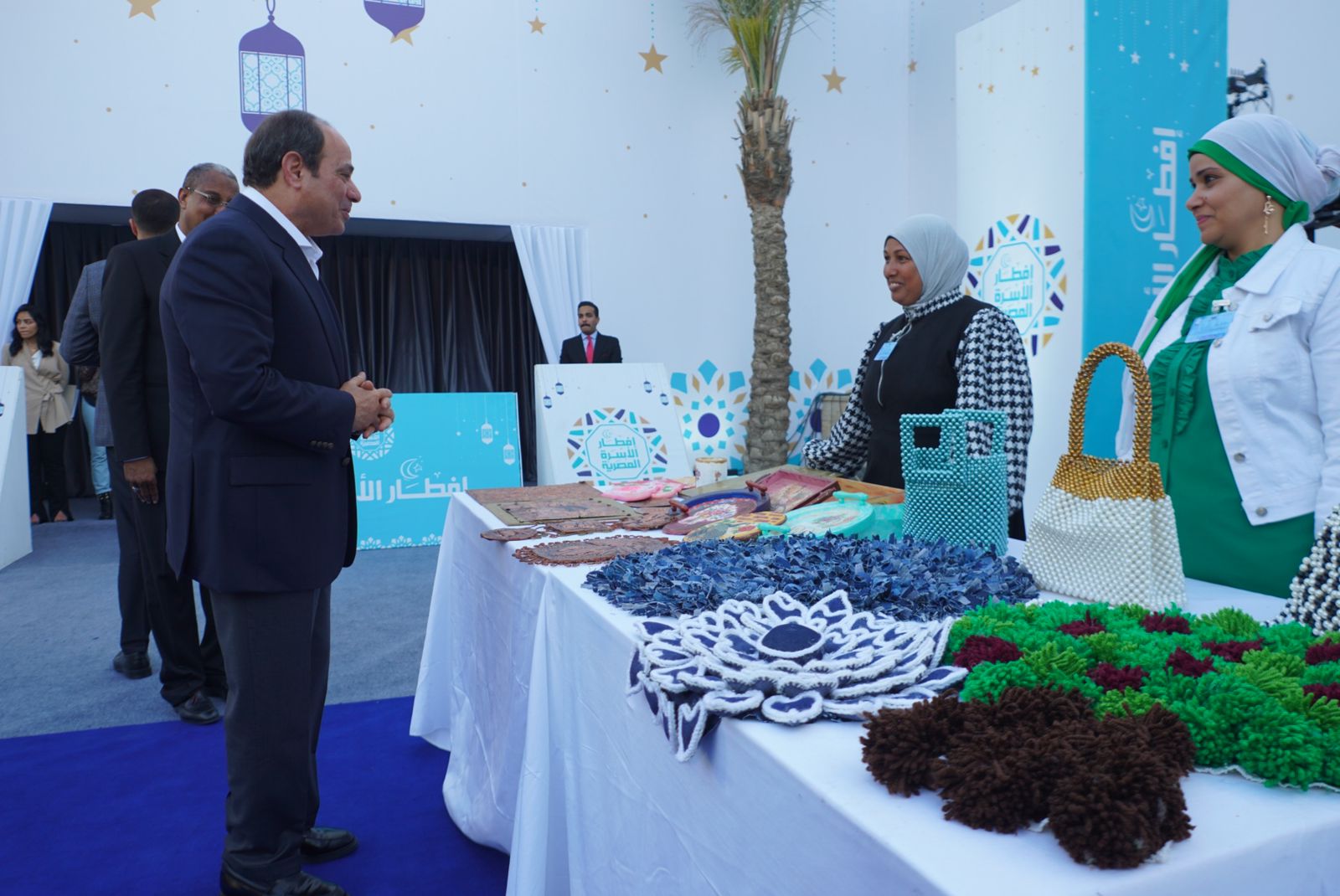 وعقب وصوله إلى مدينة الأسمرات، لتناول وجبة الإفطار بمدينة الأسمرات مع مجموعة من مواطني حي الأسمرات وبعض القيادات الشعبية وأعضاء مجلس النواب، تفقد الرئيس معرض الأسر المنتجة بمنطقة الأسمرات.