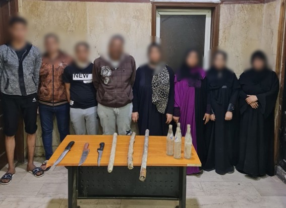 عقب تقنين الإجراءات تم ضبطهم، وبحوزتهم الأسلحة البيضاء المستخدمة في الواقعة.