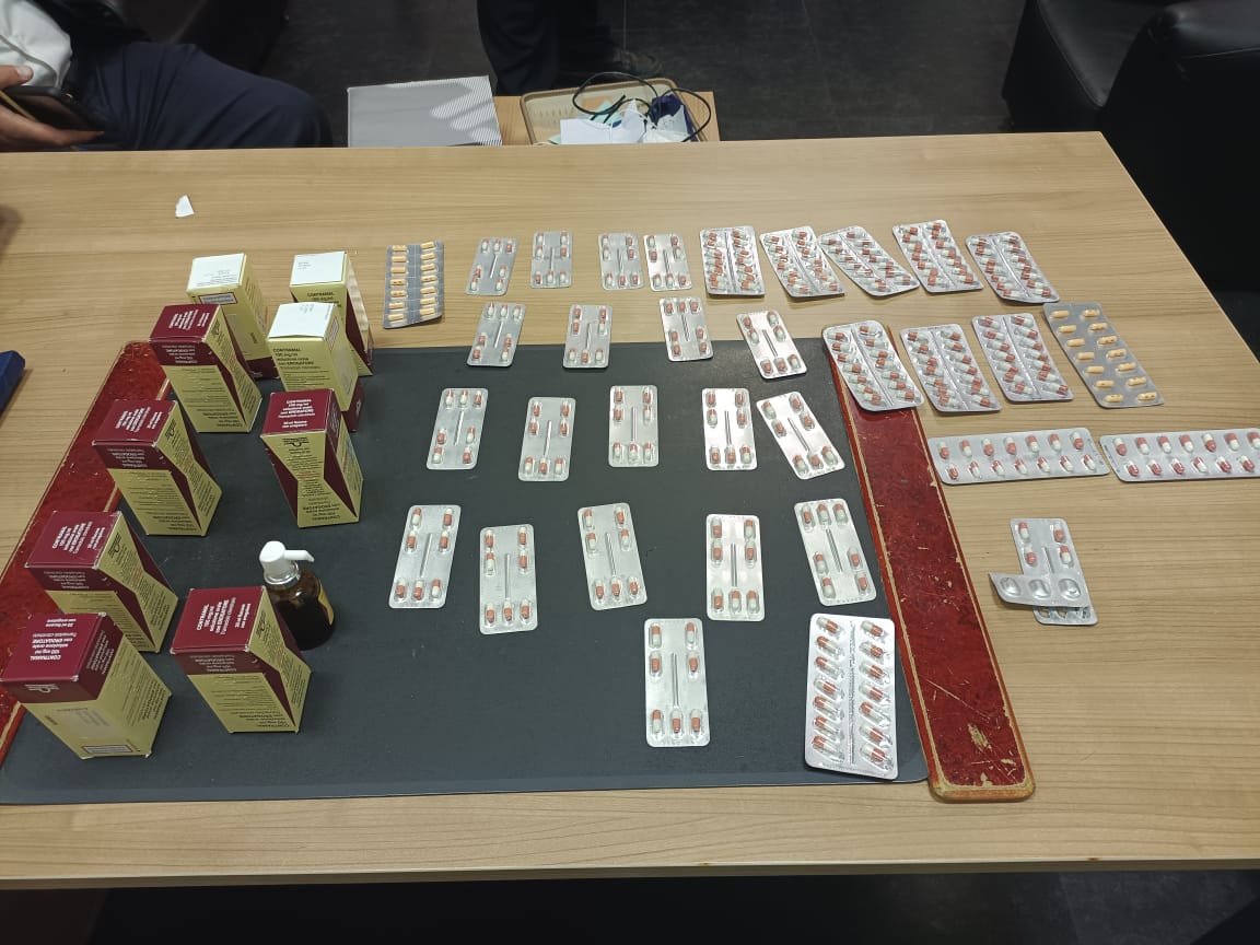 وبتفتيش حقائبه على جهاز الفحص بالأشعة بواسطة أحمد صلاح رزق مأمور الجمرك وفرج حمدي رئيس القسم تلاحظ لهما وجود عبوات دوائية داخل حقائب الراكب، وقرر هاني أبو طالب مدير الحركة المشرف على صالة الوصول بمبنى الركاب رقم 3 بتكليف مصطفى بحر مأمور الجمرك بتفتيش حقائب الراكب يدويا ما أسفر عن ضبط 10 زجاجات بها سائل لمخدر الكونترمال و25 شريطا لعقار البريجابالين المدرج بجداول المخدرات بإجمالي 322 قرصا.