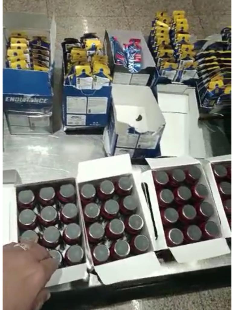 قام هاني أبو طالب مدير الحركة المشرف على صالة الوصول بمبني الركاب رقم 3 بتكليف مصطفي بحر مأمور الجمرك بتفتيش حقائب الراكب يدويا مما اسفر عن وجود كمية كبيرة من عبوات المكملات الغذائية، بلغ إجمالي المضبوطات 674 عبوة.